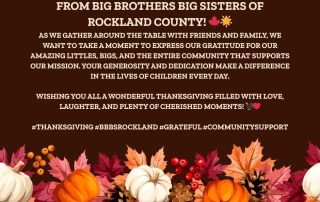 🌟🍁 Happy Thanksgiving From Big Brothers Big Sisters of Rockland County! 🍁🌟 As we gather around the table 🍽️ with friends 👨👩👧👦 and family, we want to take a moment to express our gratitude 🙏💛 for our amazing Littles 💫, Bigs 💙, and the entire community 🌍 that supports our mission. Your generosity 🤝✨ and dedication make a difference [...]